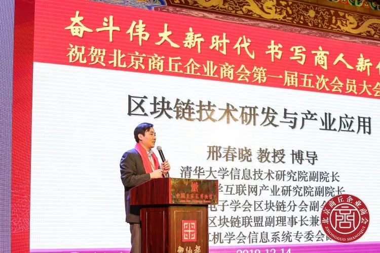 北京商丘企业商会是一个与时俱进,善于创新的学习型商会,每年会员大会都有一个学习专题,今年的专题是《区块链与商会发展》。特别请来了区块链专家清华大学邢春晓博士为会员们授课,邢博士是商丘人的骄傲,邢春晓博士,研究员,博导,清华大学信息技术研中关村区块链产业联盟副秘书长。