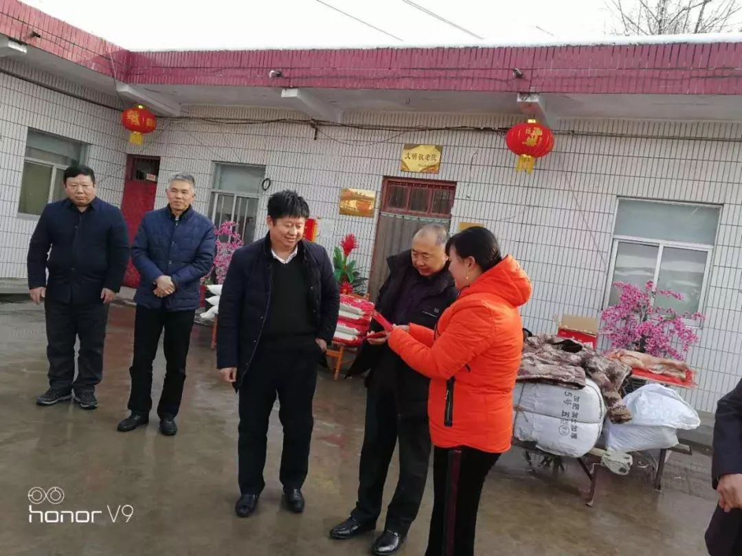 1月31日上午,北京商丘企业商会常务副会长兼秘书长张新成、常务副会长王黎明等部分商会领导与商丘市政协副主席、市工商联主席、市工信委主任刘明亮,在梁园区委常委、统战部部长赵来霞的陪同下,为梁园区观堂镇敬老院老人送去食用油、猪肉、羊肉、大米、鸡蛋、棉衣等慰问品、慰问金及新年祝福。