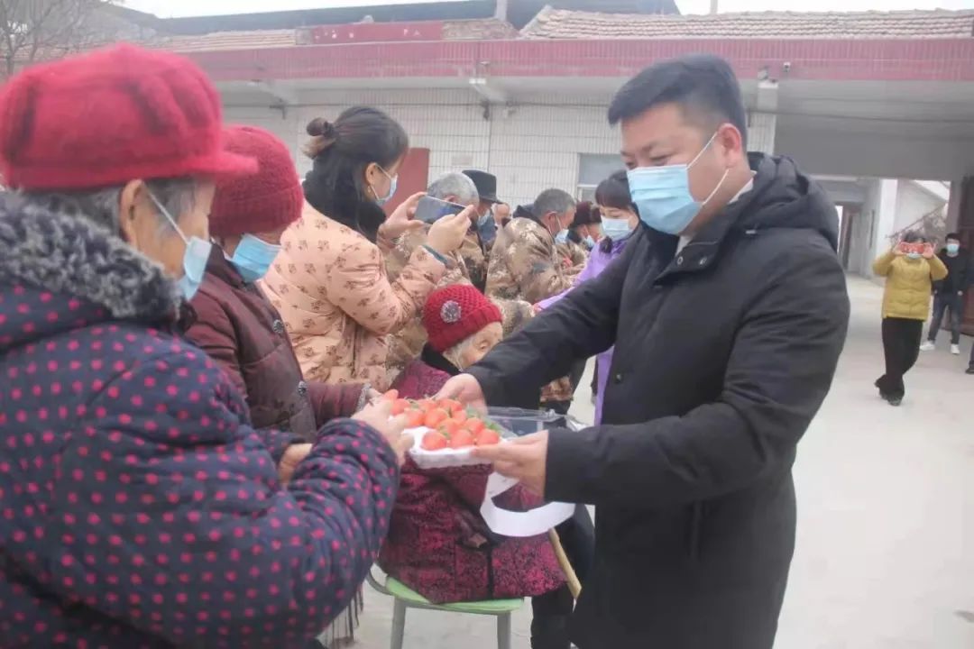 北京商丘企业商会的爱心企业家请老人品尝了草莓,送上春节的祝福以及米、油、猪肉、羊肉、鸡蛋、棉衣等慰问品和慰问金等价值2万余元。