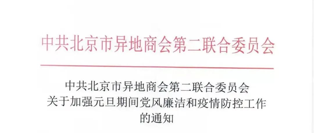 转发:《中共北京市异地商会第二联合委员会关于加强元旦期间党风廉洁和疫情防控工作的通知》